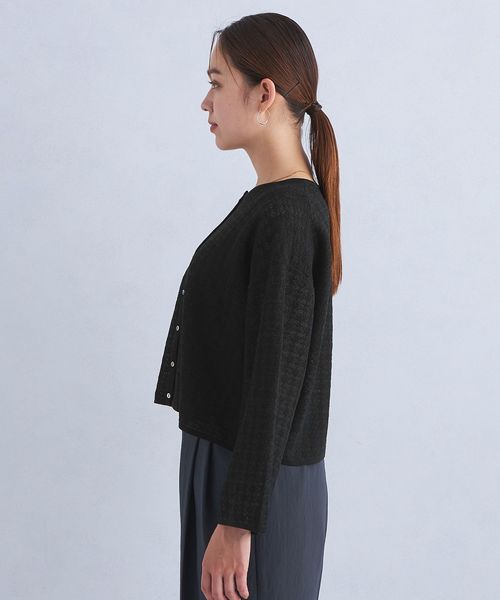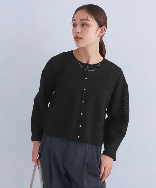 さらっと軽やかな印象で着用いただけるレースニットカーディガン。