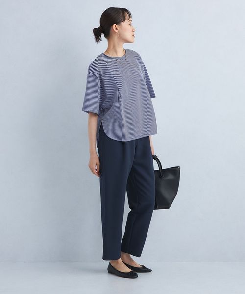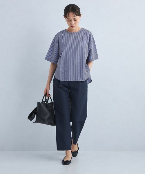 合わせるアイテム次第で、キレイめにもカジュアルにも雰囲気が変わる着回しのきく一着です。