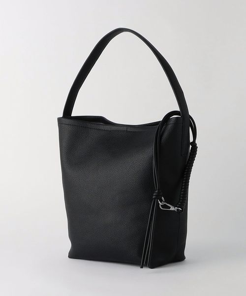 今年注目のワンショルダーとバッグチャームがシンプルなバッグにトレンド感を演出。