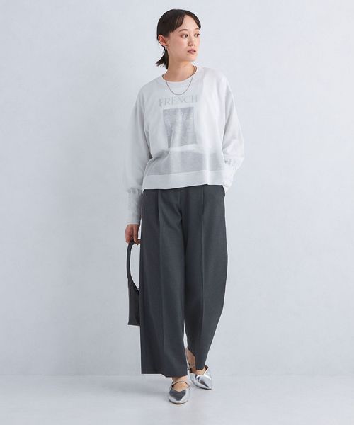 ワイドパンツにさらっと合わせたこなれ感のある着こなしがおすすめ。