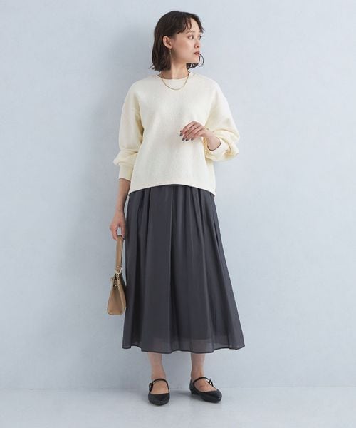 ワイドパンツやフレアスカートで合わせるとバランスよく着用いただけます。