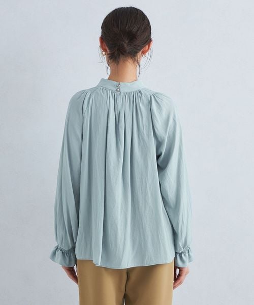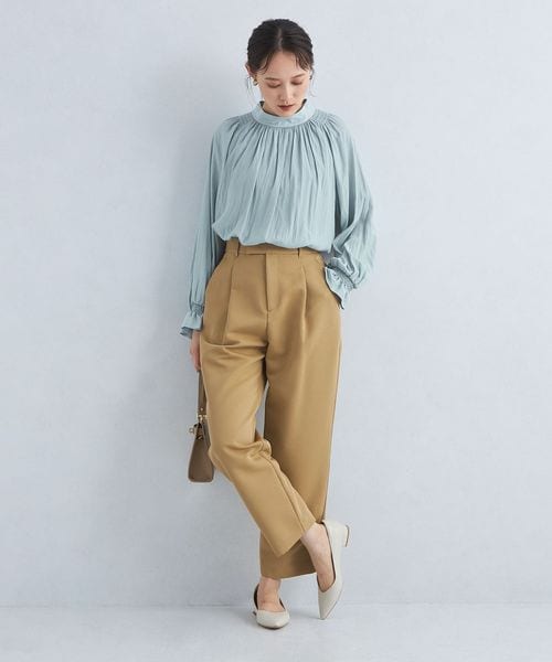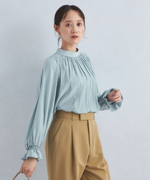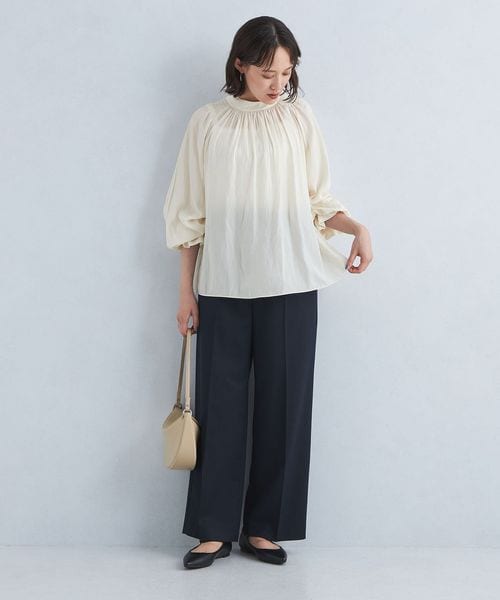 ネック周りのギャザーが立体的なシルエットを表現します。