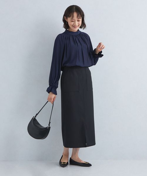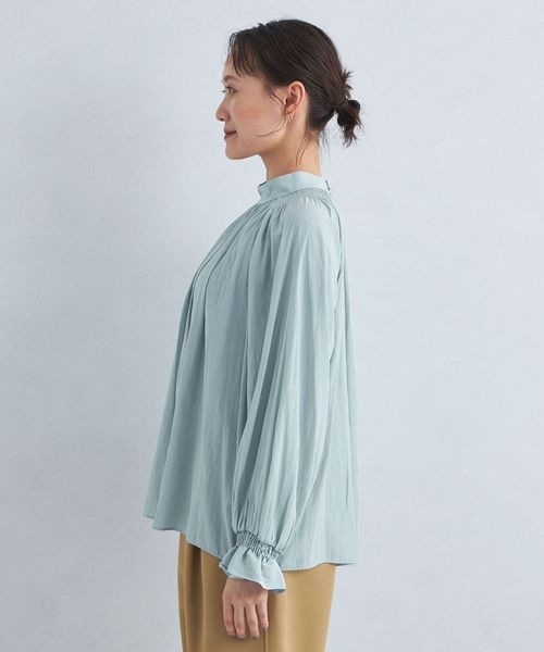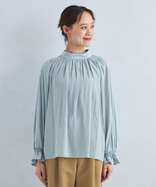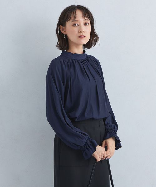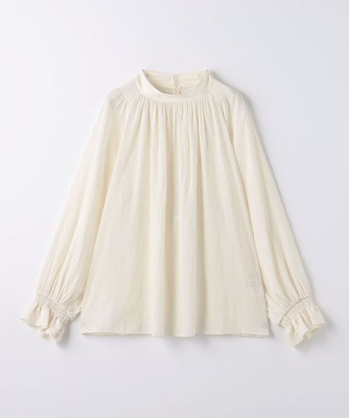 肩と袖口のシャーリングで大人フェミニンな雰囲気に仕上げました。