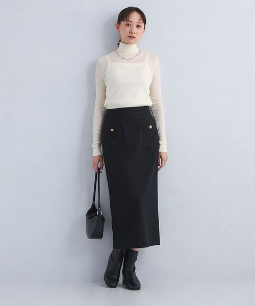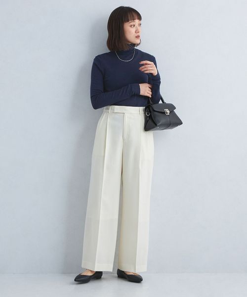 すっきりとしたシルエットなので、ボリュームのあるボトムとも好相性です。