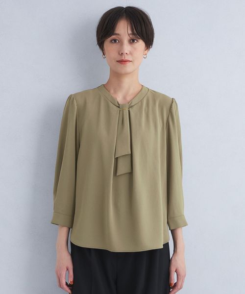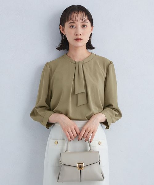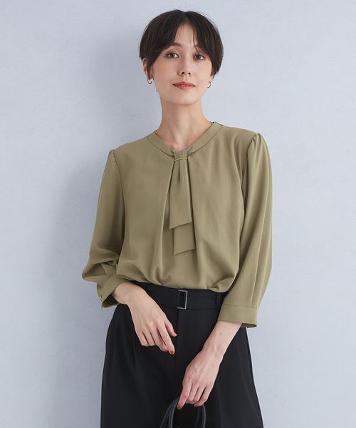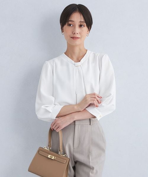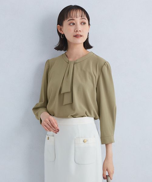 チャーム & ボウタイ 七分袖 ブラウス ―マシンウォッシャブル―