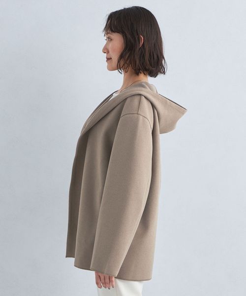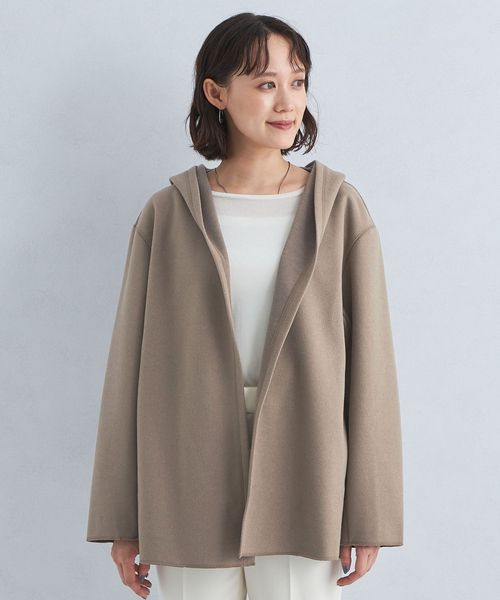 シーズンムード漂う素材感が魅力のフード付きカーディガン