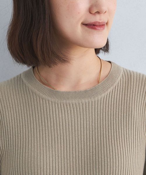 シンプルなクルーネックなので、ネックレスとの合わせもおすすめです。