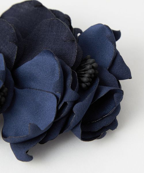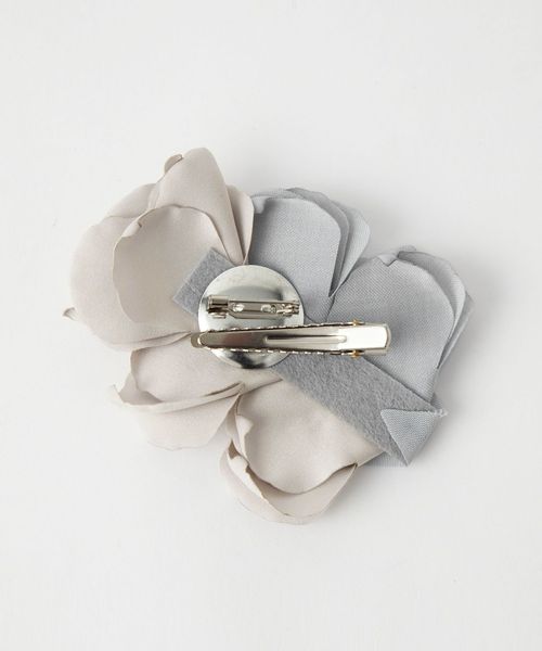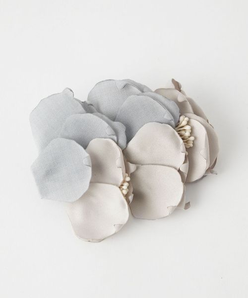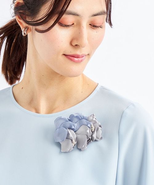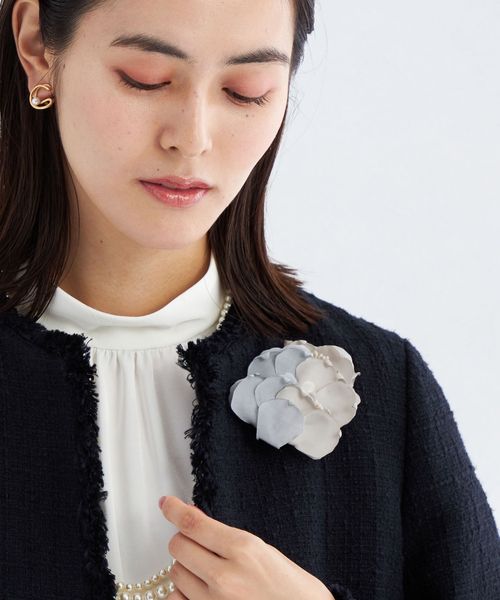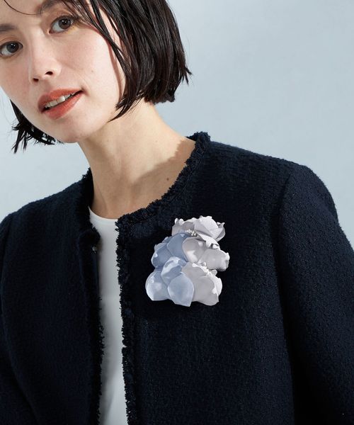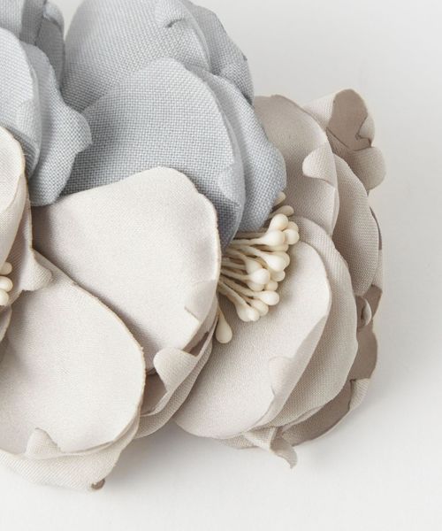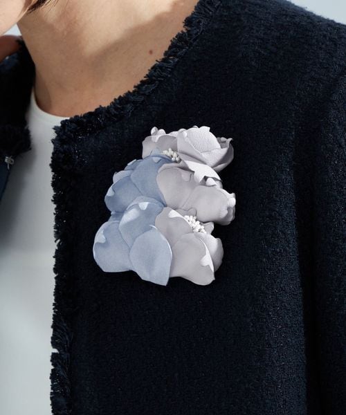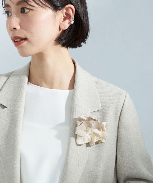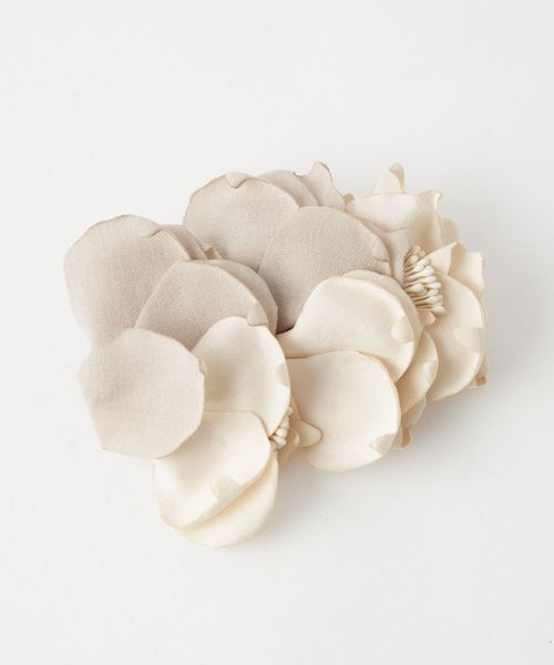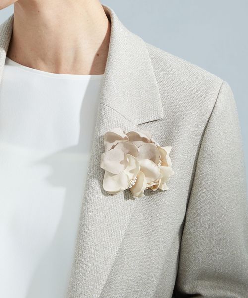 ふんわりとした花びらが優しい印象のフラワーコサージュ。