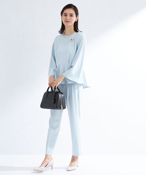 ネイビーのジャケットやワンピースに合わせるとクラシックな雰囲気に。
