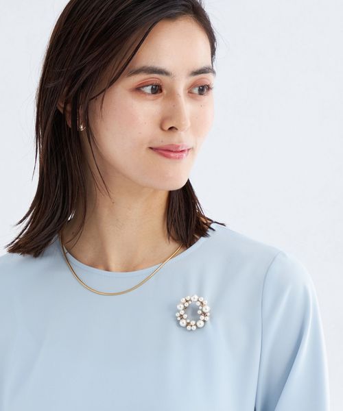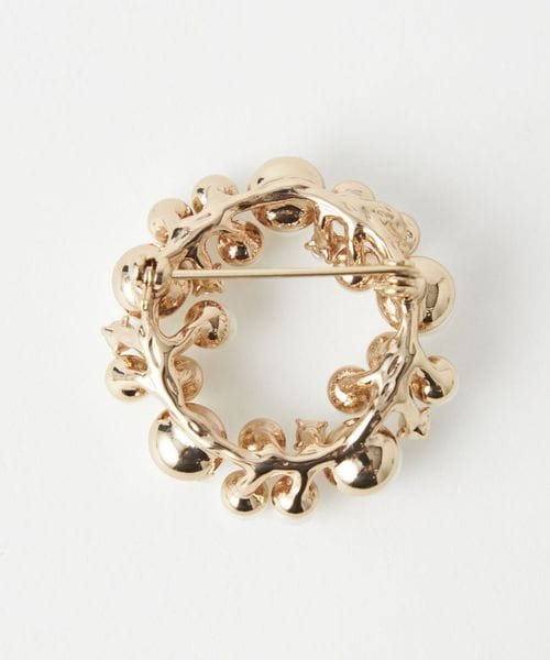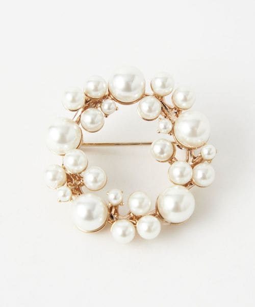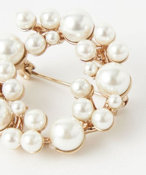 大きさの異なるフェイクパールでサークルをデザインしたブローチ。
