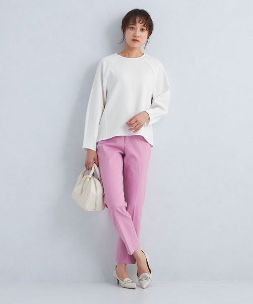 ワイドパンツからタイトスカートまで、合わせるアイテムを選ばない着回しのきく一着です。