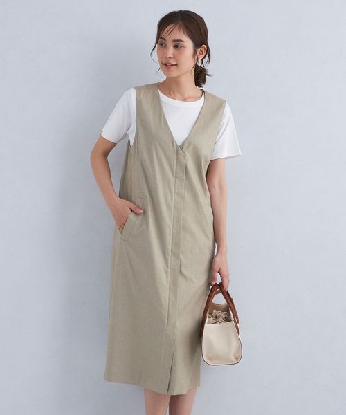 ファスナーを閉じてジャンパースカート、開けてロングジレとしても着用いただける2WAY仕様の一着。