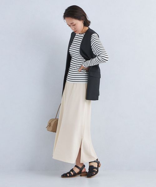 長めの着丈のトップスを合わせたこなれ感のある気こなしがおすすめです。