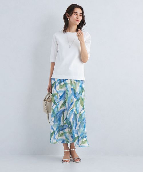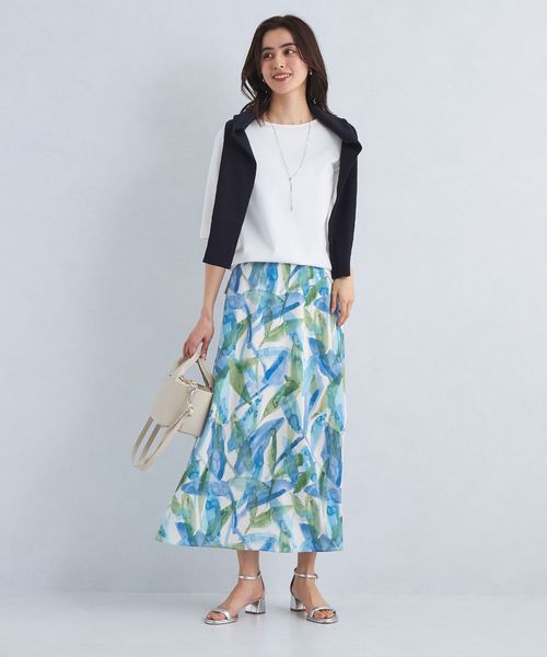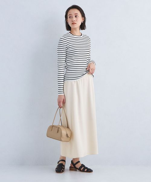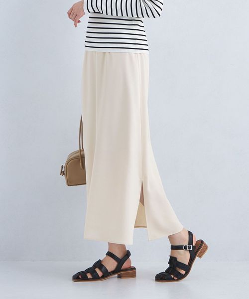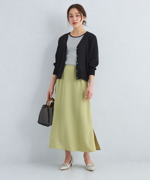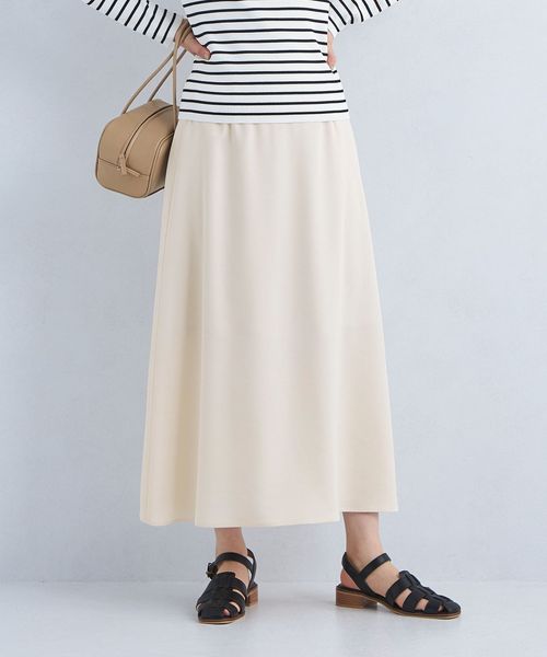 腰まわりはすっきりと、裾にかけて緩やかに広がったフレアシルエットがフェミニンな印象のスカート。