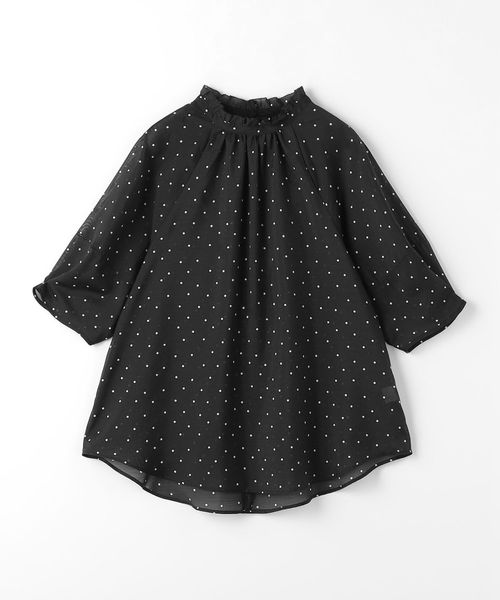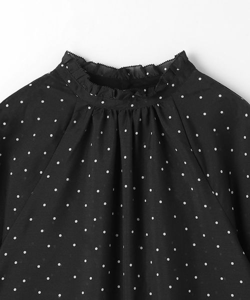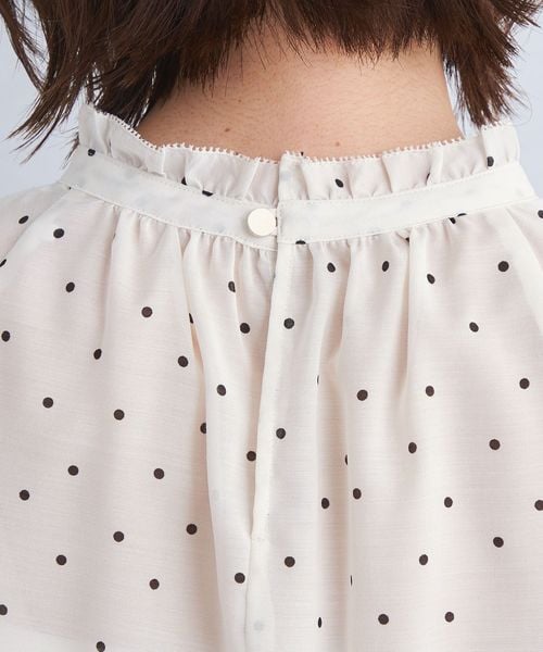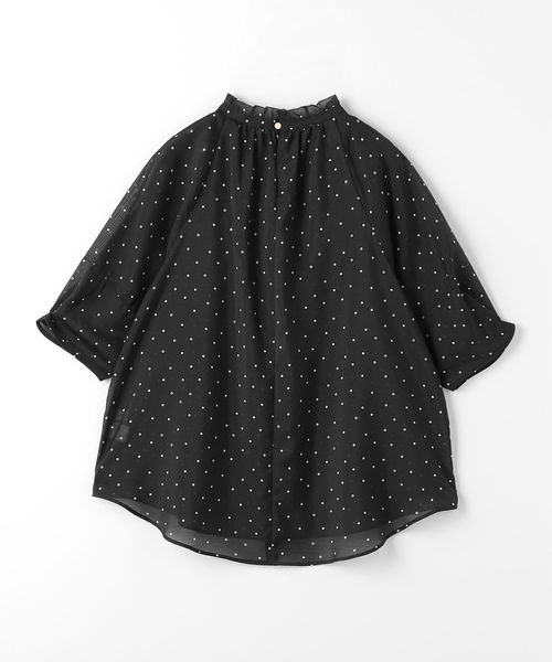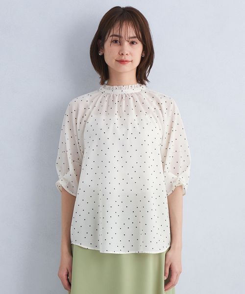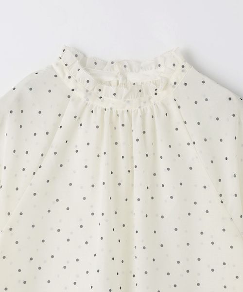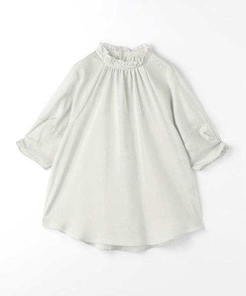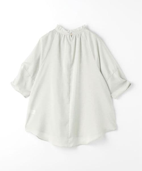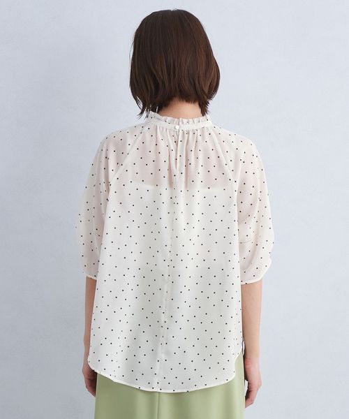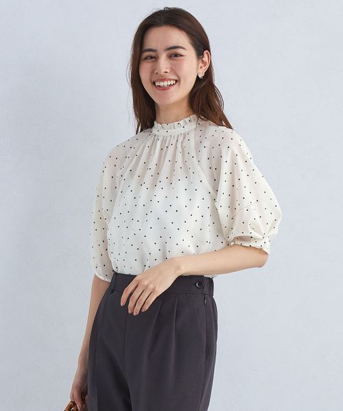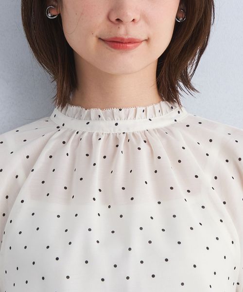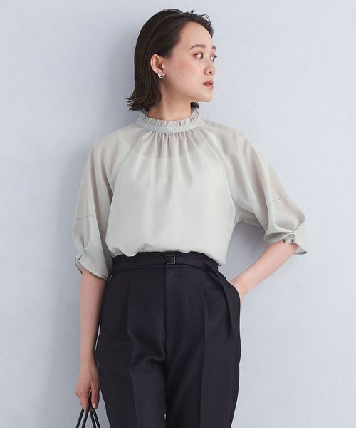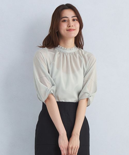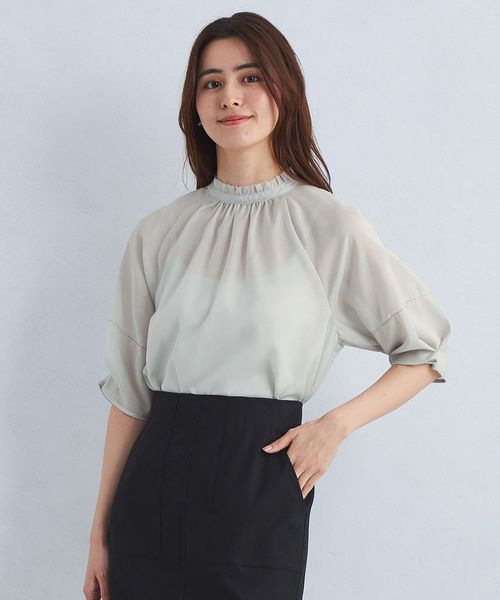 シアー ネック フリル ショート スリーブ ブラウス ―マシンウォッシャブル・防シワ―