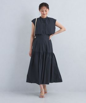 同素材のブラウスを合わせたワンピース風の着こなしもおすすめです。