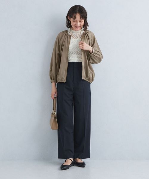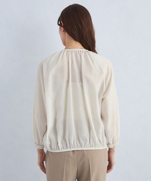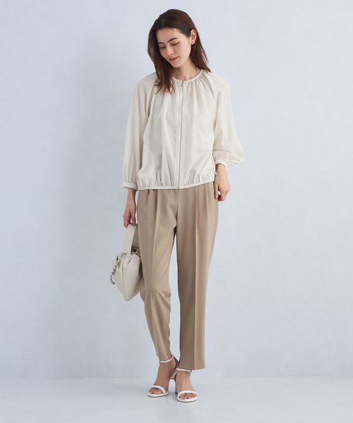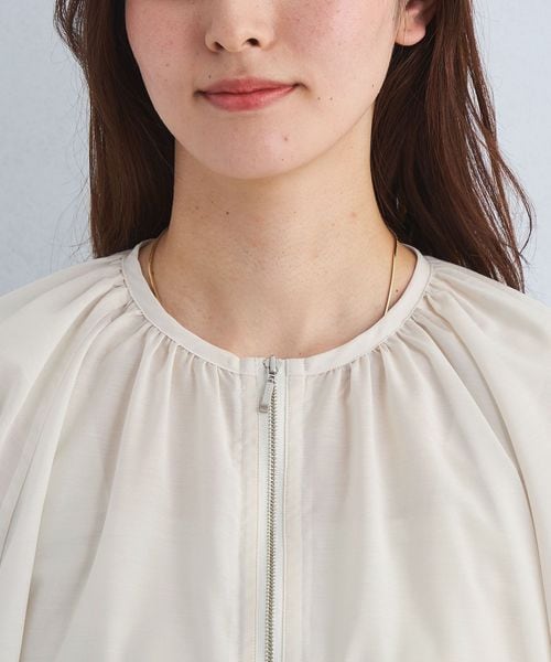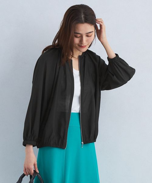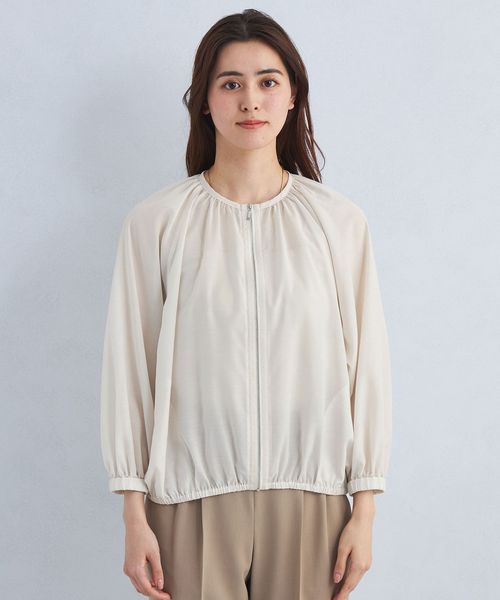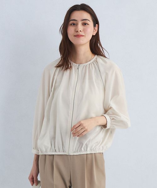 シアー ノーカラー ギャザー ブルゾン ―マシンウォッシャブル―