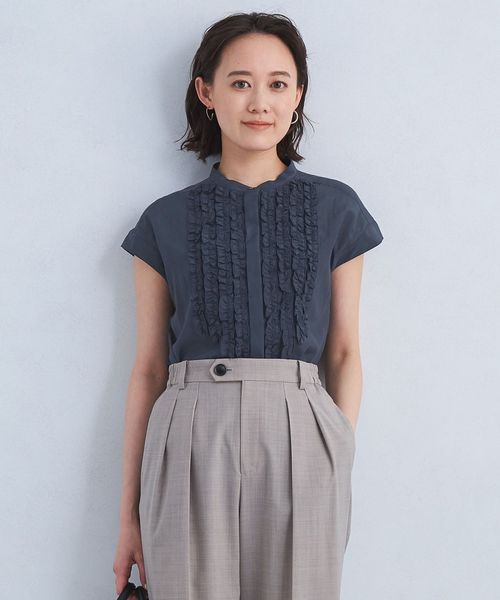 一枚での着用はもちろん、ジャケットを羽織った着こなしもフリルがアクセントになります。