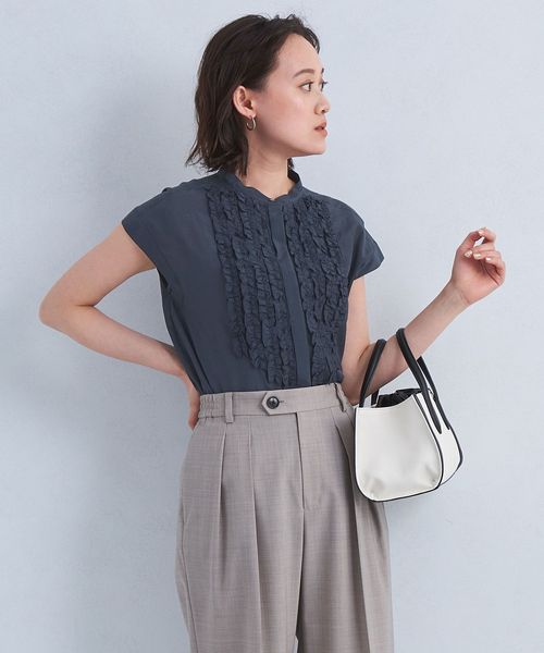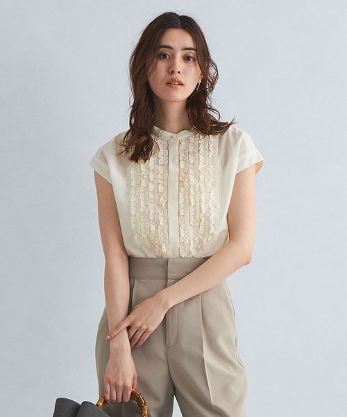 一枚での着用はもちろん、ジャケットを羽織った着こなしもフリルがアクセントになります。