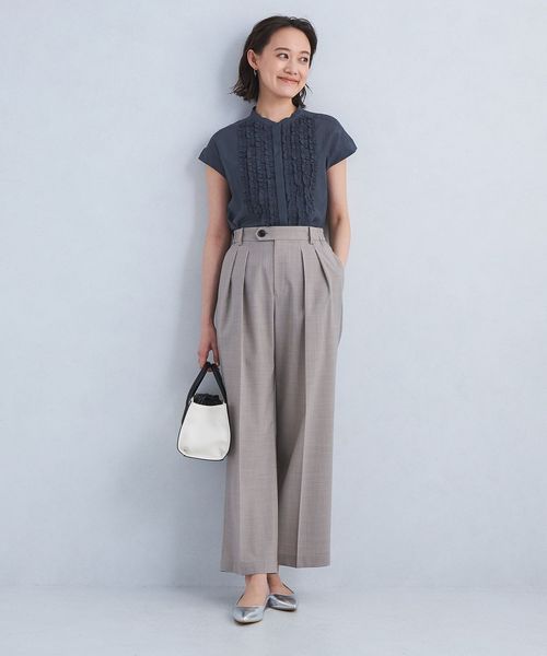 ワイドパンツで合わせたこなれ感のある着こなしがおすすめです。