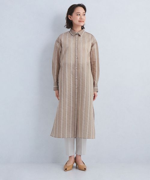 ややゆとりのあるシルエットでお作りしたシャツワンピース。