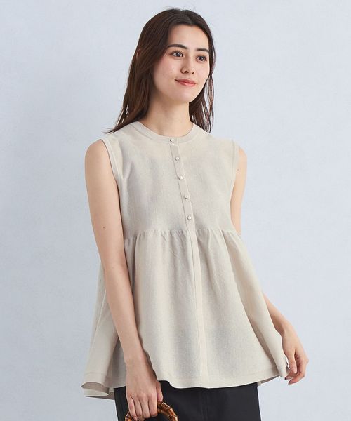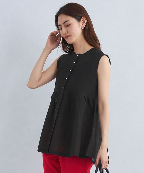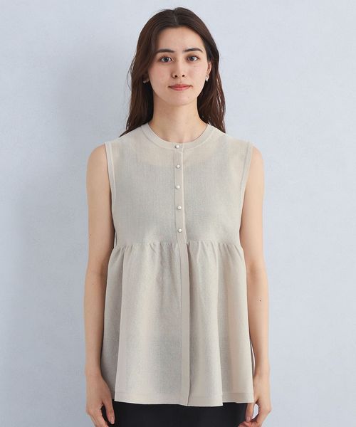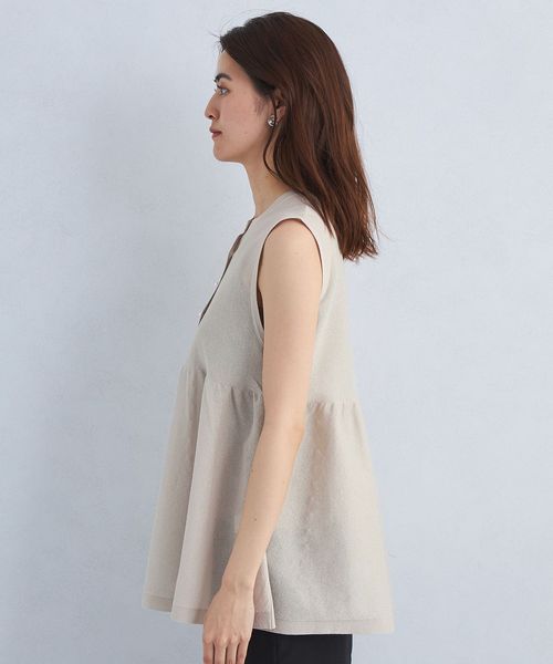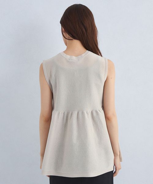 シアー ペプラム ノースリーブ ニット プルオーバー ―ウォッシャブル―
