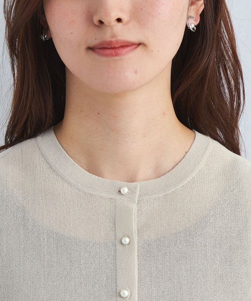 プルオーバーのデザインながら、フェイクパール釦部分は開けても着用できるデザイン。