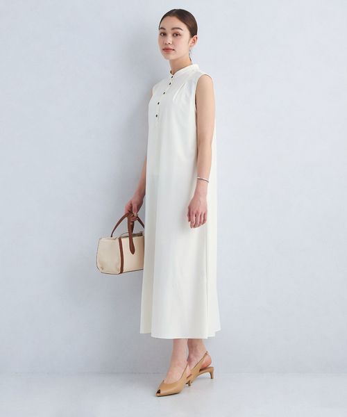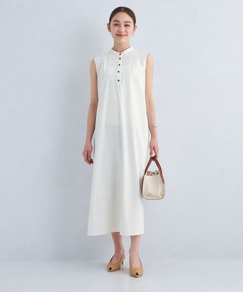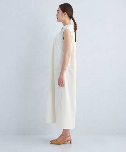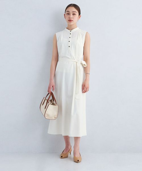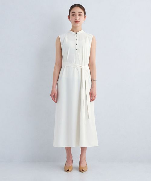 撥水 ノースリーブ ベルト ワンピース ホワイト
