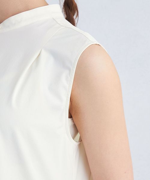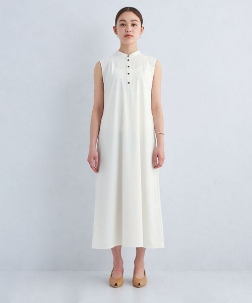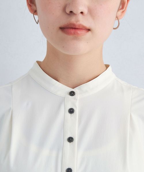 バンドカラ―のデザインが上品な印象で着用いただける一着。