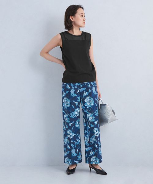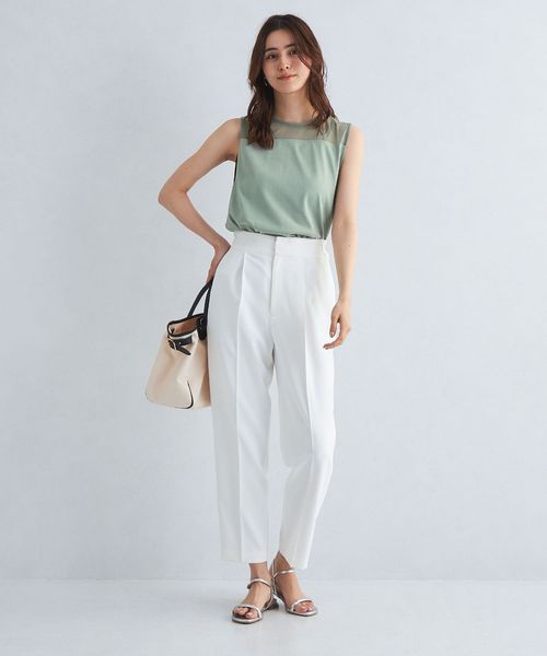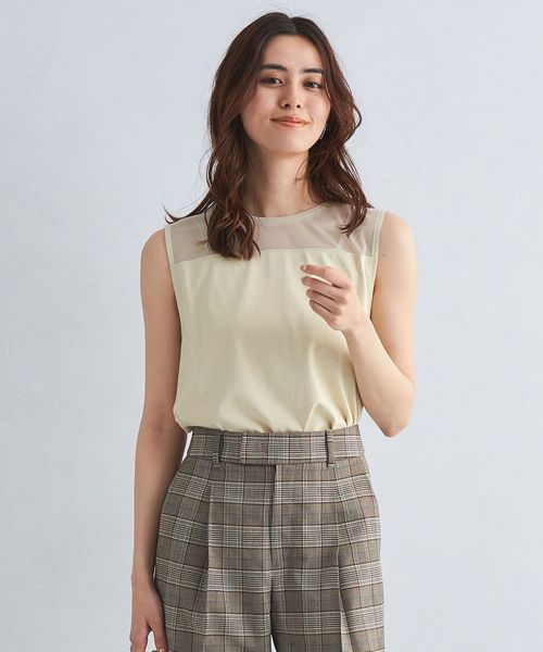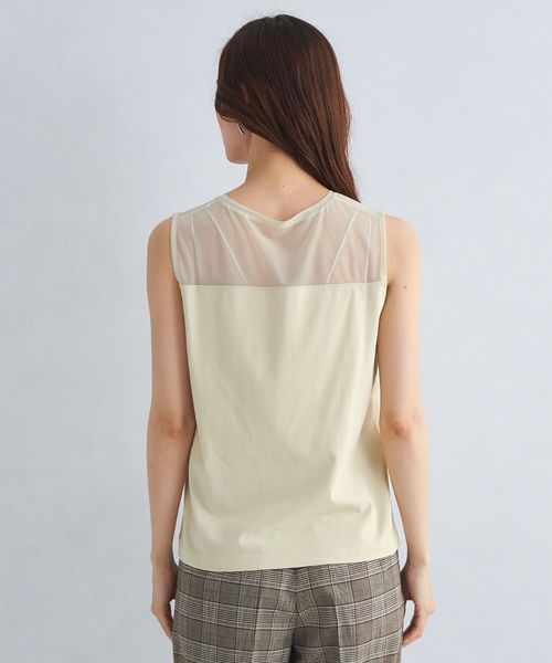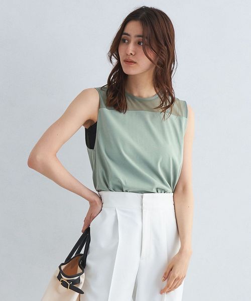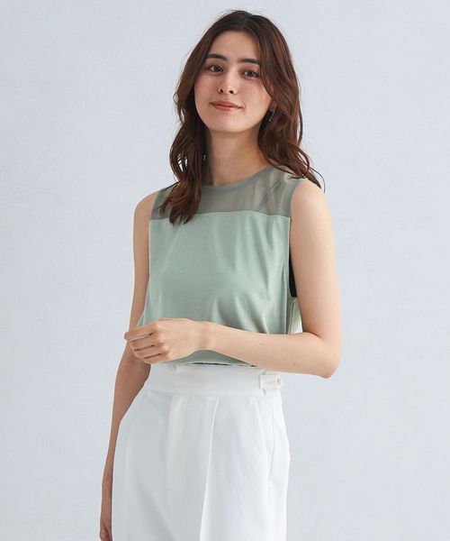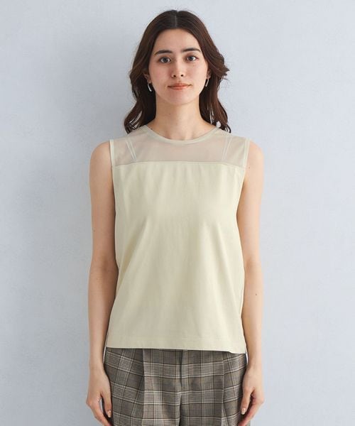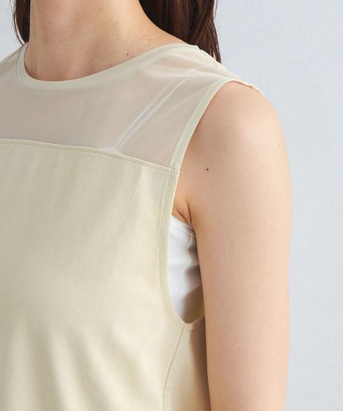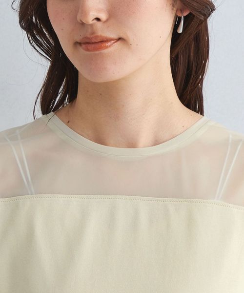 チュール生地×さらりとしたタッチのカットソーの切り替えデザイン。