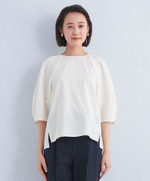 ふんわり丸みを帯びた袖のシルエットが目を惹く一着。