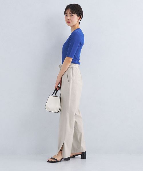 [size SHORT/TALLあり] コットン リネン セミフレア スリット パンツ