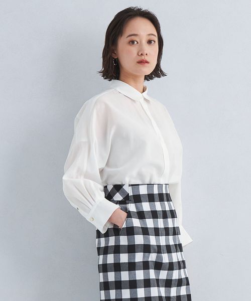 ほんのりシアーな素材感が上品な印象で着用いただけます。