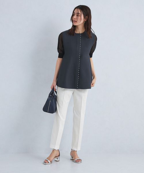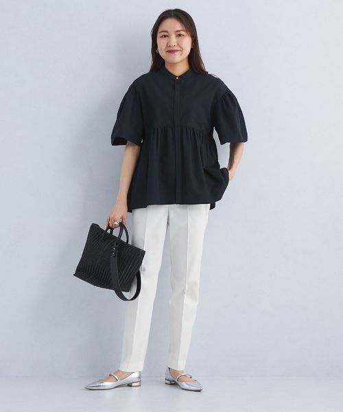 ペプラムトップスとの旬なコーディネートもおすすめです。
