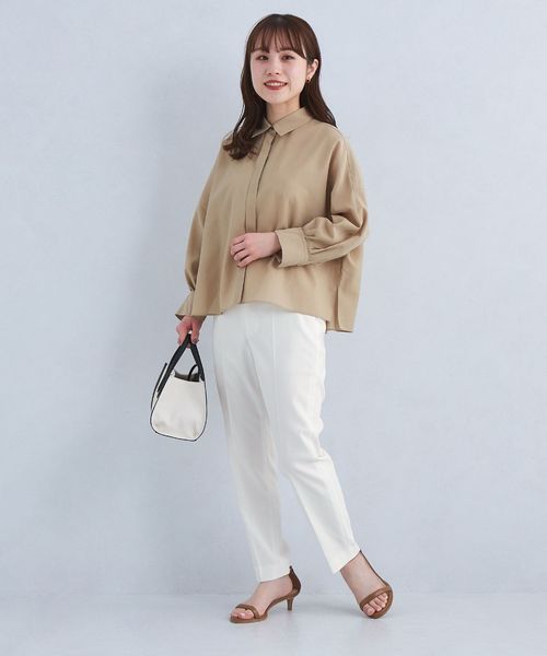 適度な伸びとハリ感のある素材なので、細身シルエットでも身体のラインを拾いすぎないのが魅力です。