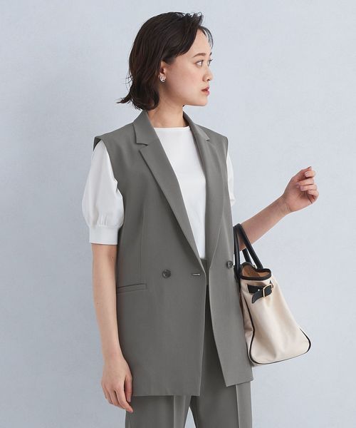さらりと柔らかく落ち感のある素材のテーラードジレ