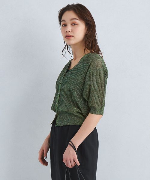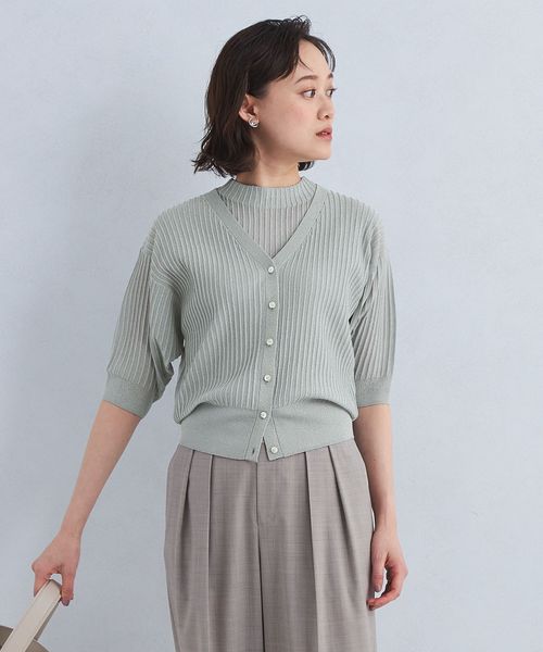 オーロララメ Vネック ニット カーディガン ―ウォッシャブル―