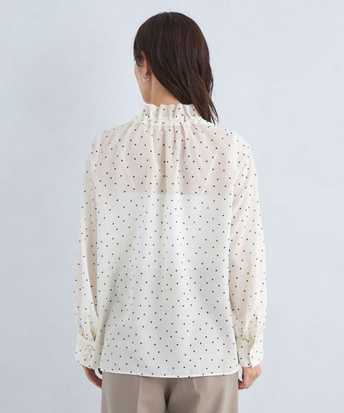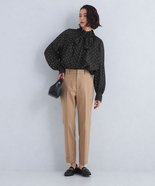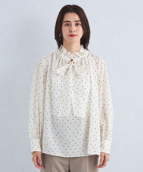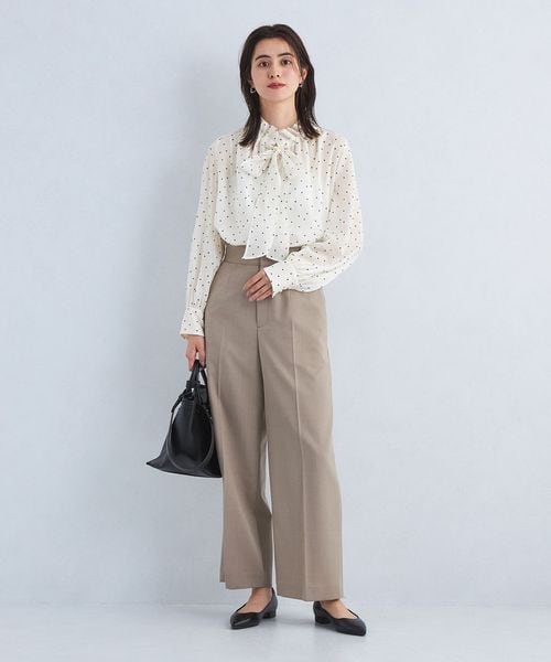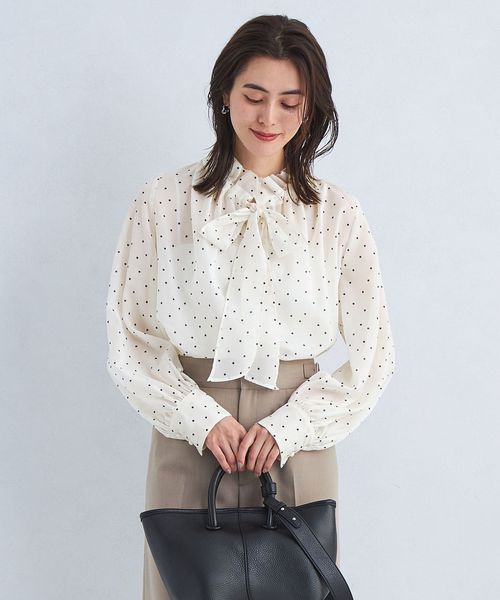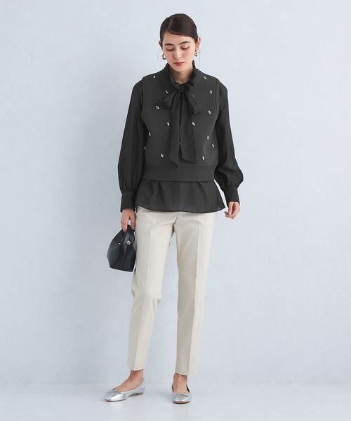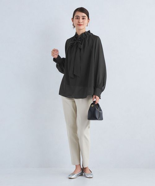 首元のフリルとボウタイデザインが大人フェミニンな印象のブラウス。