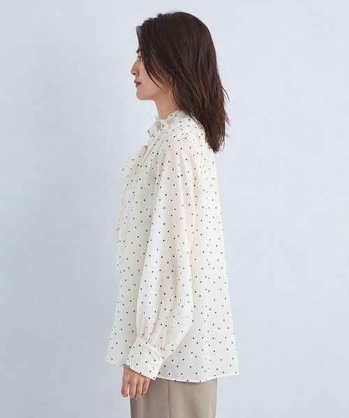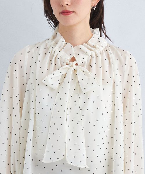 シアー フリル ボウタイ ブラウス ―マシンウォッシャブル・防シワ―