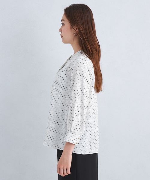 シンプルな着こなしに華を添えてくれる着映えブラウス。