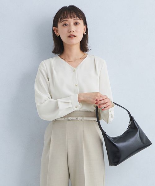 肩にタックを施し立体的に仕上げたブラウス。