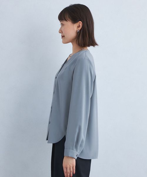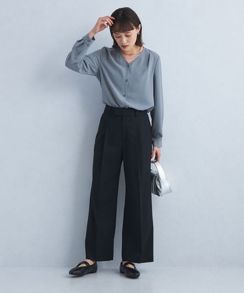 肩タック Vネック ブラウス ―マシンウォッシャブル・防シワ―