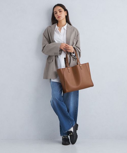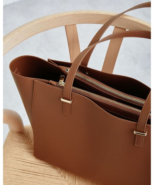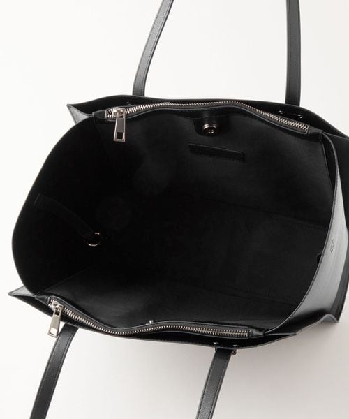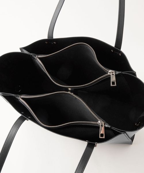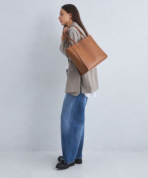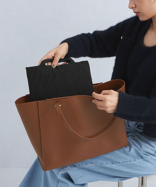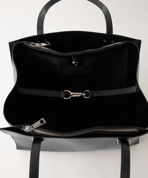 バッグ内側の金具を留めることで形状を変化させることができ、気分やスタイルで楽しめるのもポイント。