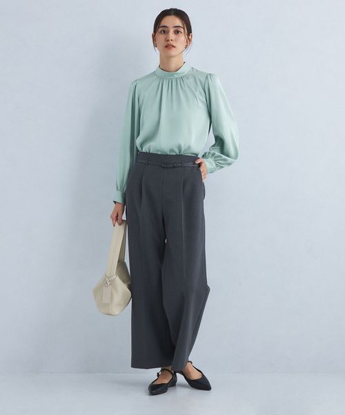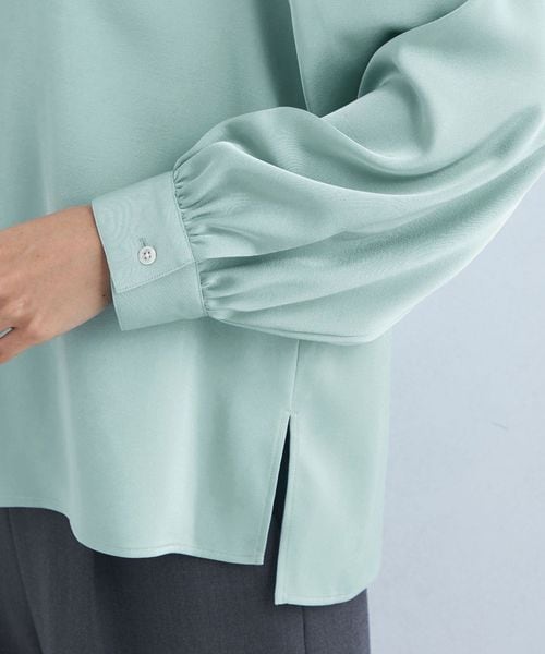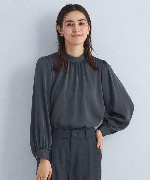 サテン スタンド ギャザー ブラウス