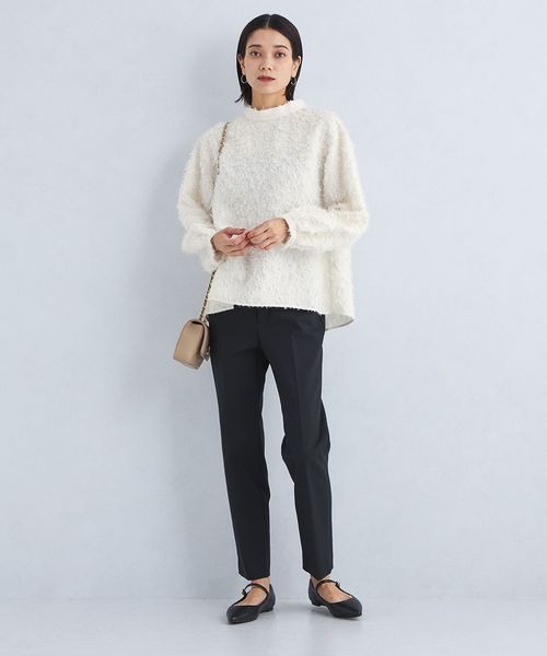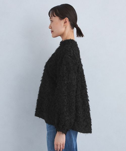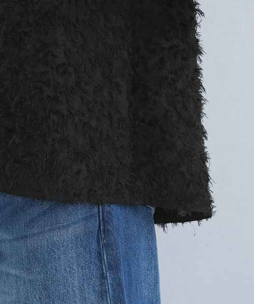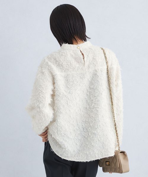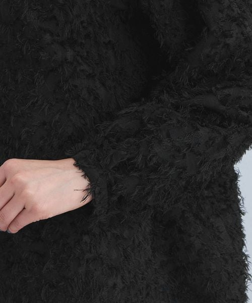 ジャカードと毛足のあるフリンジが着こなしに表情をプラスしてくれます。