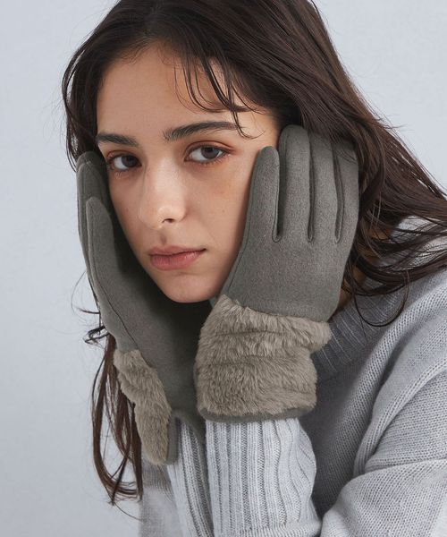 アウターの裾から手触りの良いフェイクファーが覗く、