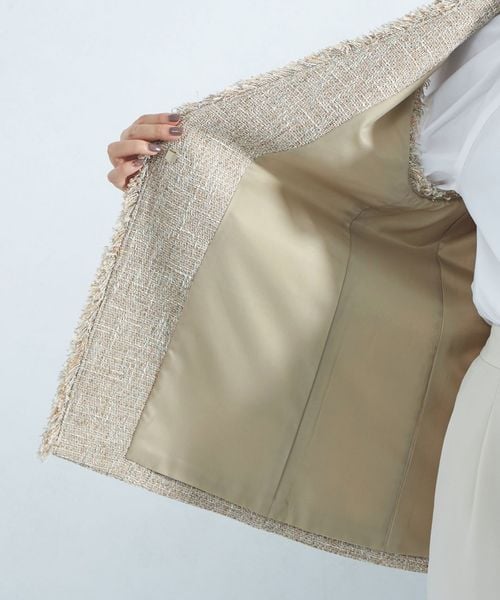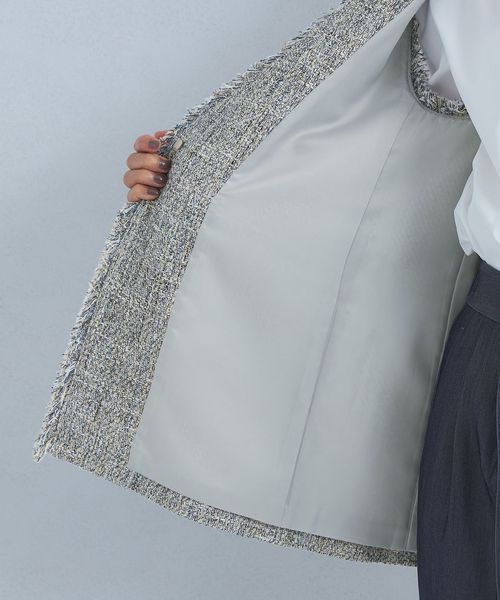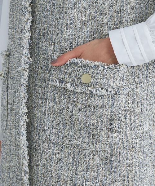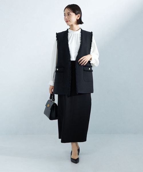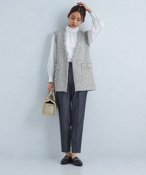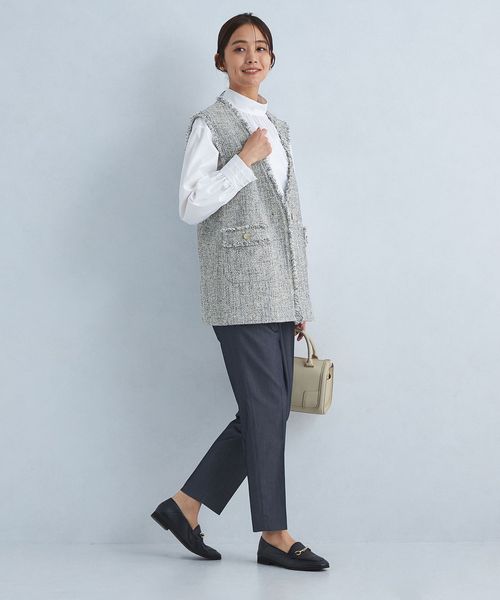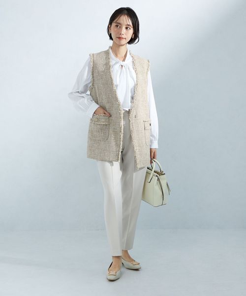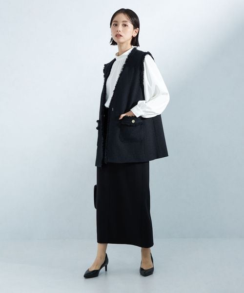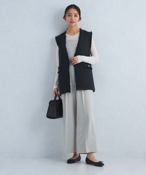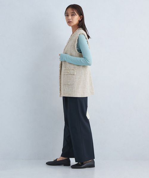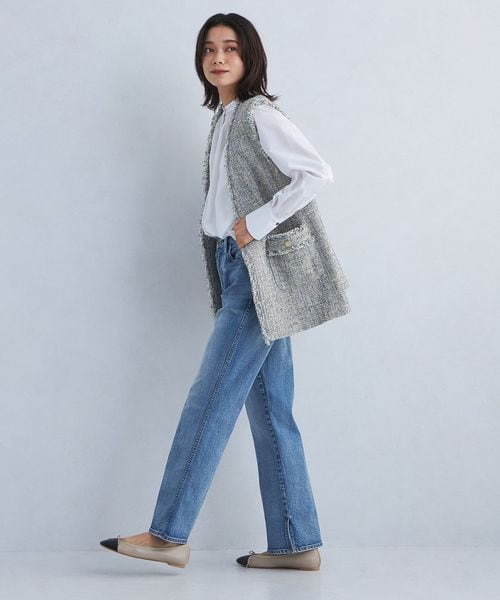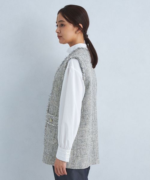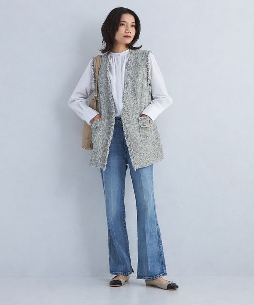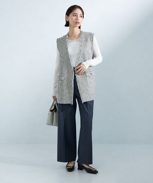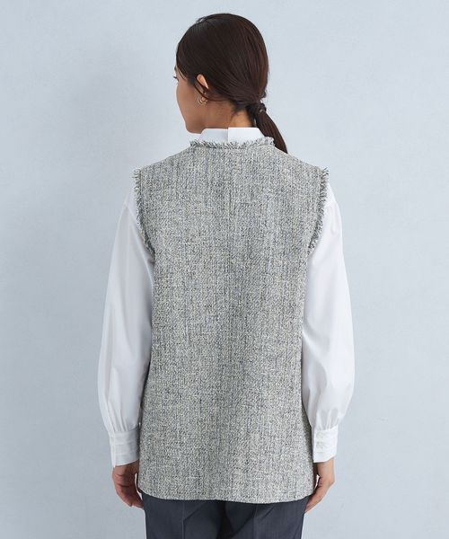 華やかなツイードライクな素材×フリンジが目を惹くジレ