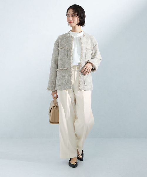 合わせるアイテムを変えてオンオフ両シーンで重宝する着回しのきく一着です。