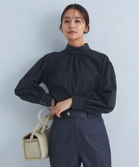 一枚でも、レイヤードスタイルでもきまるスタンドカラのブラウス。