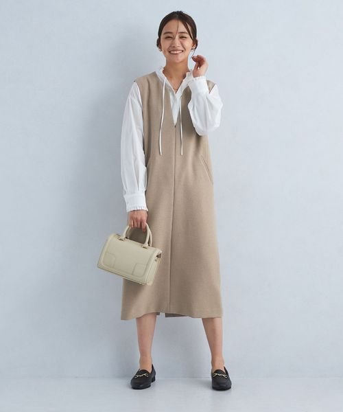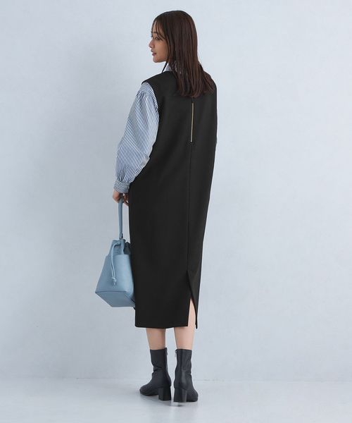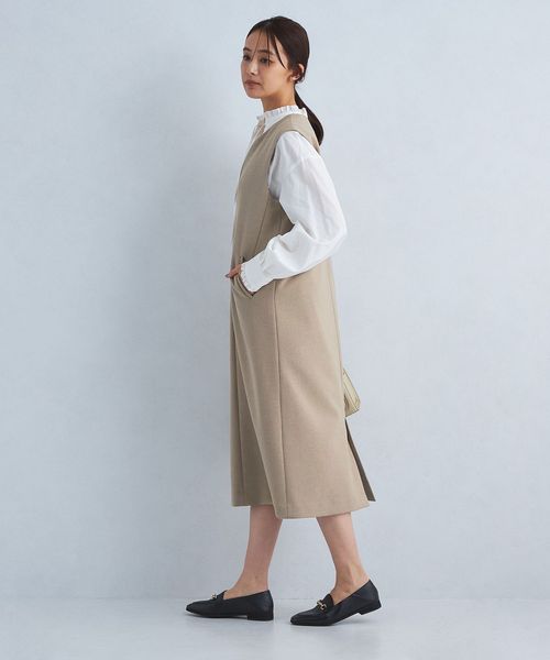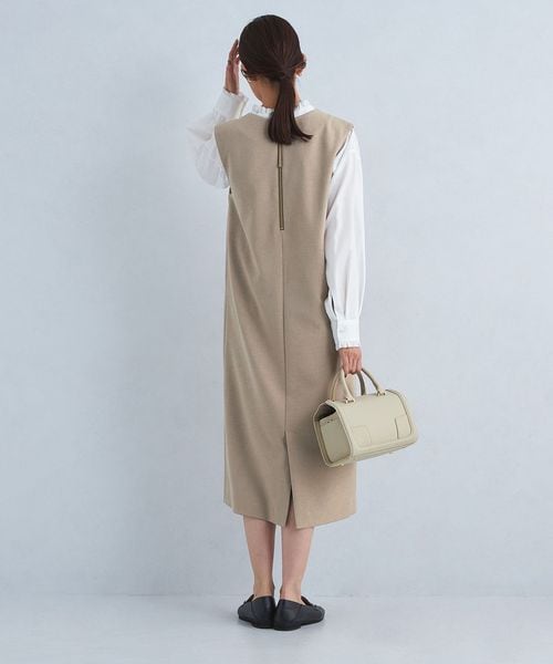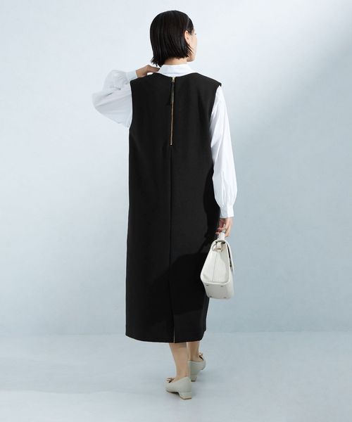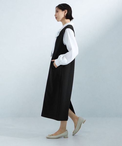 大人の上品さを感じさせるデザインで、オンオフ問わずに重宝するジャンスカです。